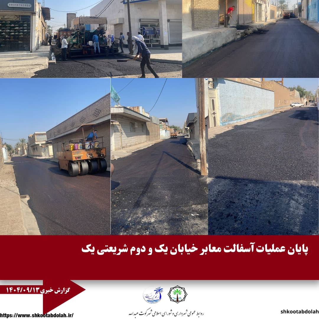 عملیات عمرانی آسفالتریزی در معابر فرعی منطقه شریعتی یک همچنان با سرعت در حال اجراست. بر همین اساس، فرعی اول خیابان چهارم شریعتی به طور کامل به اتمام رسیده و قابل بهرهبرداری است.همچنین عملیات آسفالتریزی فرعی اول خیابان بینیَم و دو، حد فاصل کوچههای ۱ و ۲ آغاز شده و طبق برنامهریزی انجامشده تا پایان هفته به پایان خواهد رسید.این پروژهها در راستای بهبود عبور و مرور شهروندان، ارتقای کیفیت معابر و افزایش ایمنی تردد در محله در حال انجام است.