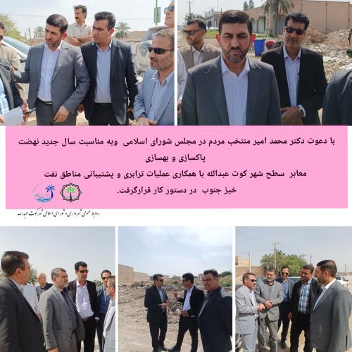 با دعوت دکتر محمد امیر منتخب مردم در مجلس شورای اسلامی ومهندس کعبی فرماندار شهرستان کارون وبه مناسبت سال جدید نهضت پاکسازی و بهسازی معابر سطح شهر کوت عبدالله با همکاری عملیات ترابری و پشتیبانی مناطق نفت خیز جنوب در دستور کار قرارگرفت.
